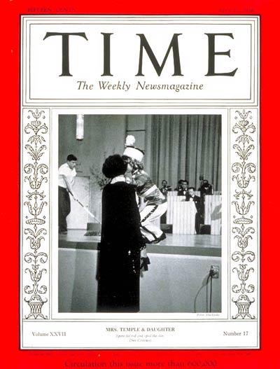 Not a bit of it. She loved it all, both then and years later, when the cuteness had gone but the dimples remained. Hadn’t her mother pushed her into it? No, just encouraged her, and wrapped her round with affection, including fixing her 56 ringlets every night and gently making her repeat her next day’s lines until sleep crept up on her. Hadn’t she been punished cruelly while making her “Baby Burlesks”, when she was three? Well, she had been sent several times to the punishment box, which was dark and had only a block of ice to sit on. But that taught her discipline so that, by the age of four, she would “always hit the mark”—and, by the age of six, be able to match the great Bill “Bojangles” Robinson tap-for-tap down the grand staircase in “The Little Colonel”.