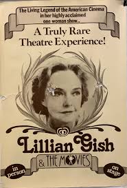 Lillian Gish was born in 1893 in Springfield, Ohio. She was a leading lady of the silent cinema and made many films with D.W. Griffith. In the 1940’s she retunred to films as a character actress and had an amazingly long career. Her film highligfhts include “Duel in the Sun” with Jennifer Jones in 1946, “Portrait of Jeannie” again with Jennifer Jones, “Night of the Hunter” with Robert Mitchum and “Whales of August” with Bette Davis which she made at the age of 94. She died in her 100th year.