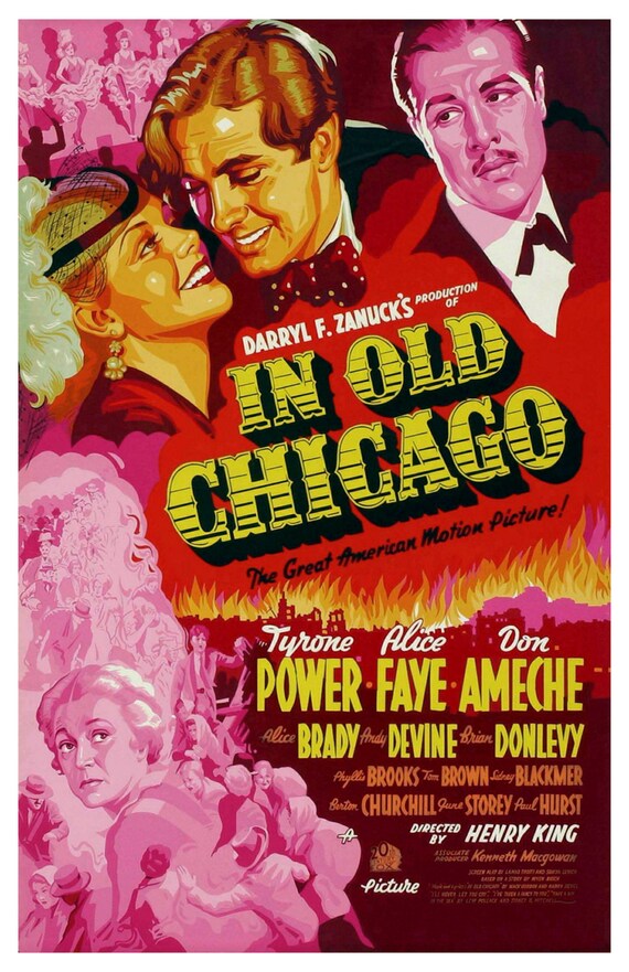 Zanuck had long planned to make an epic film centred on the great Chicago fire, and hoped to borrow Jean Harlow from MGM to star in it. When Harlow died, the director Henry King suggested Faye for the role, and Tyrone Power volunteered to test with her to prove to Zanuck that she was up to the part. With a budget of nearly $2m, In Old Chicago (1938) was a prestigious production that gained six Oscar nominations.