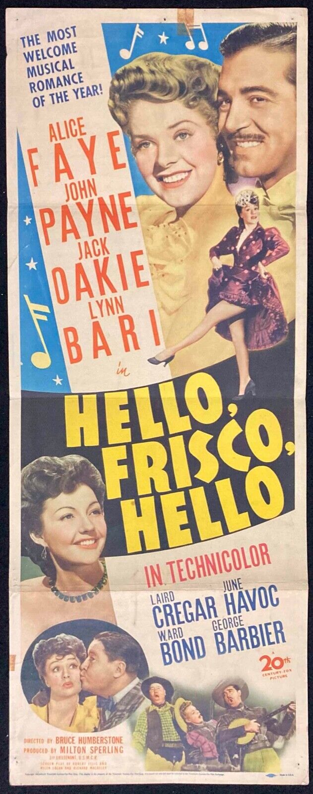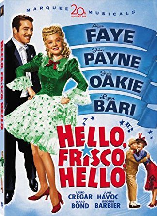 In 1941 Faye married the band leader Phil Harris, noted for his wild life-style, but the marriage lasted over 50 years until his death, albeit with an unusual arrangement in later years that had Harris living part of the time in a separate house where he could have all-night poker sessions. After time off to have her first child (her pregnancy costing her roles in Roxie Hart, My Gal Sal and Springtime in the Rockies), Faye returned to the screen in Hello, ‘Frisco, Hello (1943), the second of her personal favourites. It is packed with terrific numbers including the Warren-Gordon hit “You’ll Never Know” and “By The Light of the Silvery Moon”.