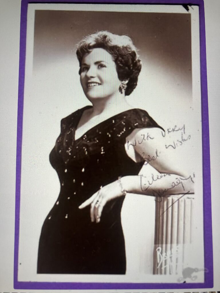 She was taken on by the Philips label immediately, and found herself in a recording studio within days. Two extended play (EP) records – the first of at least thirty singles, EPs and LPs – quickly established her as a new talent under the stage name Eileen Donaghy. Her repertoire mainly consisted of ballads with Irish subject matter, including some traditional lyrics, with fairly minimal though up-beat arrangements and accompaniments. Her voice quality was very identifiable, with a wide range, clarity and a lilt readily attuned to dance rhythms. Her versions of popular songs such as ‘The homes of Donegal’ became classics. As well as finding immediate success with record sales (later on the Fontana label, a subsidiary of Philips), Donaghy was booked into venues up and down the country, in parochial carnivals, ballrooms and city theatres. Her live performances were extremely popular, thanks to her naturally warm and outgoing personality and stage presence; she was as successful in comic songs as in pathos. Unlike that of other female entertainers who came along later, Donaghy’s image was rather sedate, featuring knee-length frocks rather than hot pants; her nine pregnancies did impede her career a good deal, at a time when pregnant women would not have been seen much in public performance.