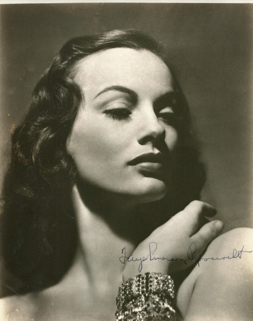 At this juncture, Faye was probably better known as Mrs. Elliott Roosevelt, the fourth child of Franklin and Eleanor Roosevelt, whom she married in 1944. Her husband was a war hero and author and the couple lived in the White House for a spell (FDR died in 1945). Faye abruptly abandoned the Hollywood scene after her marriage and the couple instead became major figures in the New York social scene. Sometime after the war Elliott and Faye entered the Soviet Union as journalists where they interviewed Joseph Stalin for a national publication.