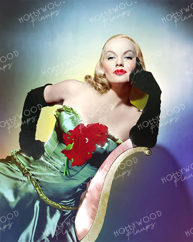 Her first marriage to a San Diego car dealer, William Crawford, was short-lived, but produced one child before it ended in 1942. Both Paramount and Warner Bros. talent scouts spotted her in a 1941 San Diego production of “Here Today” and were impressed, offering her contracts. She decided on Warner Bros. and began uncredited in such films as Manpower (1941) and Blues in the Night (1941). During her five-year tenure at Warners she progressed to a variety of swanky secondary and co-star roles in such “B” war-era movies as Murder in the Big House (1942) starring Van JohnsonAir Force (1943) with Gig YoungThe Desert Song (1943) starring Dennis MorganThe Mask of Dimitrios(1944) with Peter LorreBetween Two Worlds (1944) with John GarfieldThe Very Thought of You (1945) (again) with Dennis MorganHotel Berlin (1945) starring Helmut DantineDanger Signal (1945) with Zachary Scott, and Nobody Lives Forever (1946) (again) starring John Garfield. A large portion of the roles she received were interesting at best. For the most part, however, Faye was caught in glittery roles that were submerged in “men’s pictures”.