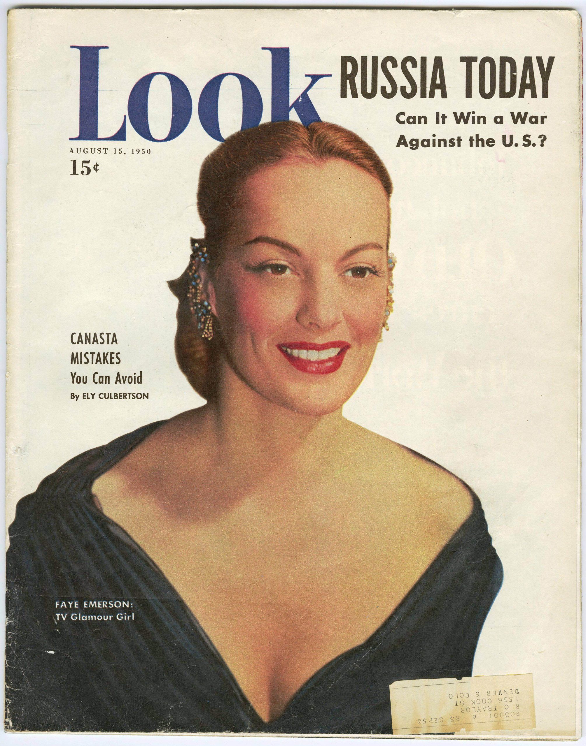 At this juncture, Faye was probably better known as Mrs. Elliott Roosevelt, the fourth child of Franklin and Eleanor Roosevelt, whom she married in 1944. Her husband was a war hero and author and the couple lived in the White House for a spell (FDR died in 1945). Faye abruptly abandoned the Hollywood scene after her marriage and the couple instead became major figures in the New York social scene. Sometime after the war Elliott and Faye entered the Soviet Union as journalists where they interviewed Joseph Stalin for a national publication.