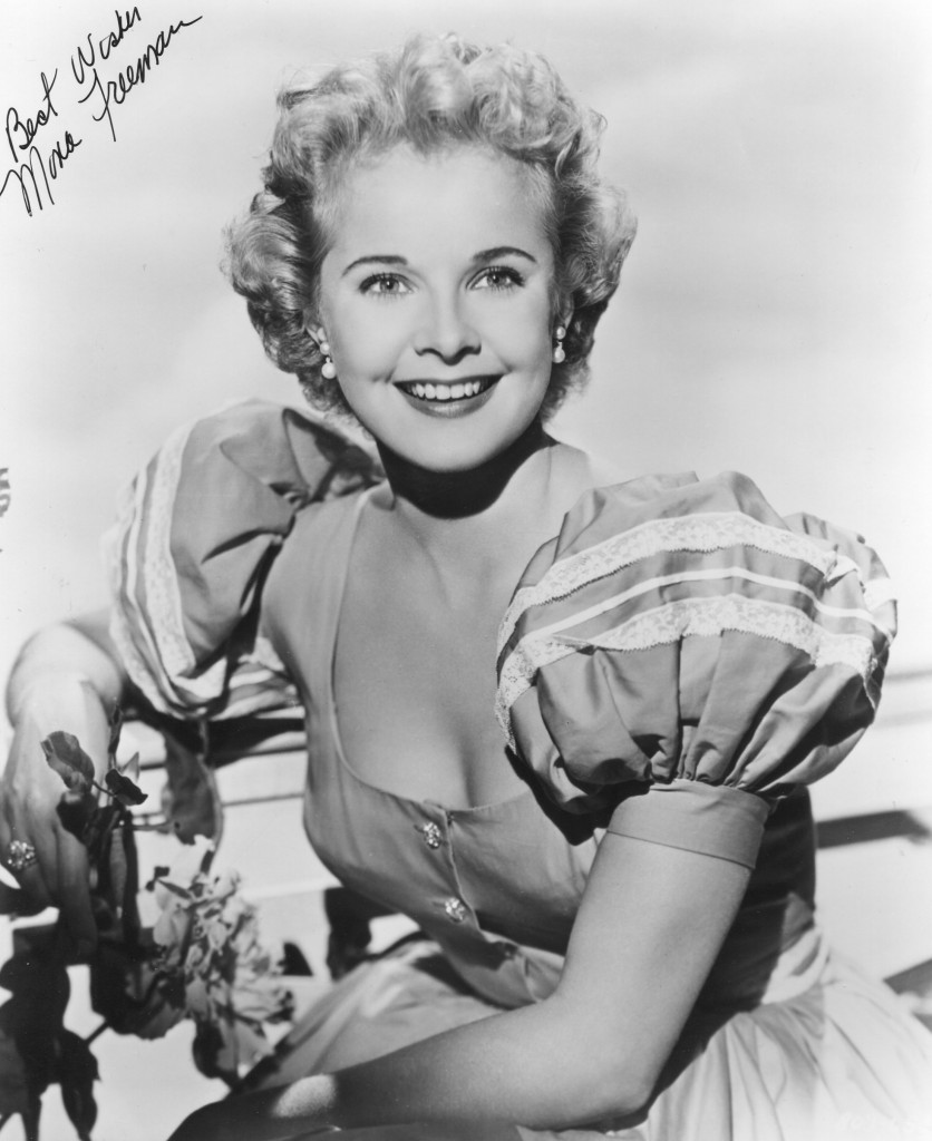 Pert and pretty Mona Freeman was born in 1926 in Baltimore. Her first major film role was in “Junior Miss” in 1945. Other roles include “Dear Ruth”, “Mother Wore Tights”, “The Heiress” and “Battle Cry”. She died in 2014.