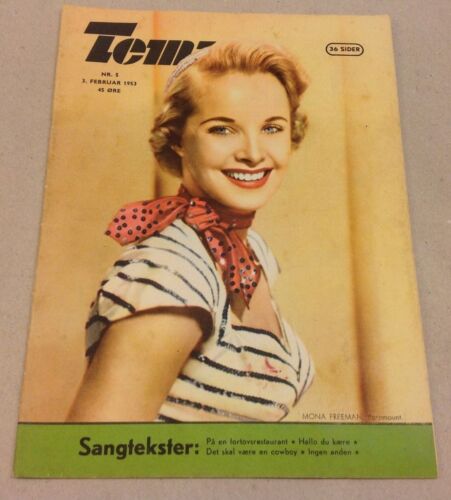 Pert and pretty Mona Freeman was born in 1926 in Baltimore. Her first major film role was in “Junior Miss” in 1945. Other roles include “Dear Ruth”, “Mother Wore Tights”, “The Heiress” and “Battle Cry”. She died in 2014.