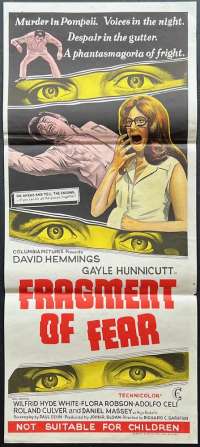 In 1972, Hemmings ventured into directing, taking on the suspense thriller Running Scared, in which the chief role was played by Gayle Hunnicutt, his wife from 1968 to 1974, and with whom he had earlier co-starred in Fragment Of Fear (1970). Running Scared, which Hemmings also co-scripted with Clive Exton, was an ambitious, if ultimately flawed, exercise in psychological tension, made in an elliptical narrative style seemingly influenced by Antonioni.