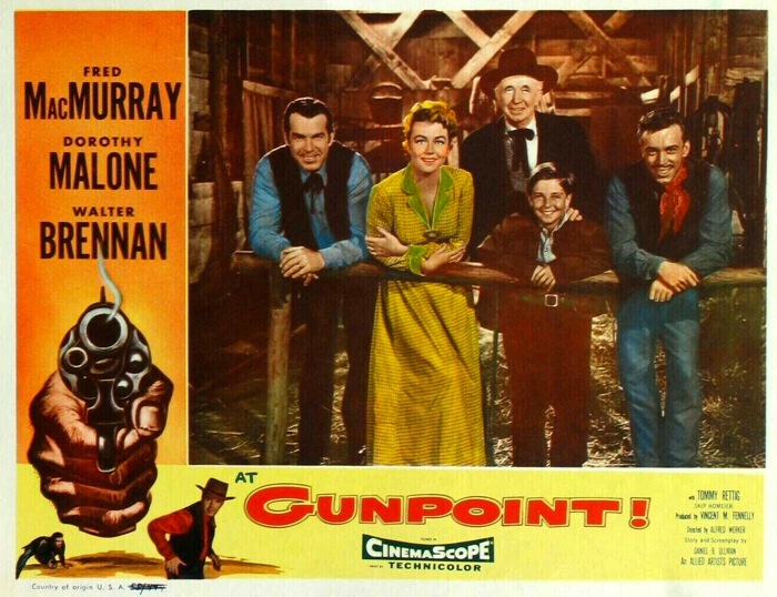 The 1940s gave him his chance to shine. He proved himself in melodramas such as Above Suspicion (1943) and musicals (Where Do We Go from Here? (1945)), somewhat ironically becoming one of Hollywood’s highest-paid actors by 1943, when his salary reached $420,000. He scored a huge hit with the thoroughly entertaining The Egg and I(1947), again teamed with Ms. Colbert and today largely remembered for launching the long-running Ma and Pa Kettle franchise. In 1941, MacMurray purchased a large parcel of land in Sonoma County, California and began a winery/cattle ranch. He raised his family on the ranch and it became the home to his second wife, June Haver after their marriage in 1954. The winery remains in operation today in the capable hands of their daughter, Kate MacMurray. Despite being habitually typecast as a “nice guy”, MacMurray often said that his best roles were when he was cast against type by Billy Wilder. In 1944, he played the role of “Walter Neff”, an insurance salesman (numerous other actors had turned the role down) who plots with a greedy wife Barbara Stanwyck to murder her husband in Double Indemnity (1944) — inarguably the greatest role of his entire career. Indeed, anyone today having any doubts as to his potential depth as an actor should watch this film. He did another stellar turn in the “not so nice” category, playing the cynical, spineless “Lieutenant Thomas Keefer” in the 1954 production of The Caine Mutiny (1954), directed by Edward Dmytryk. He gave another superb dramatic performance cast against type as a hard-boiled crooked cop in Pushover (1954).