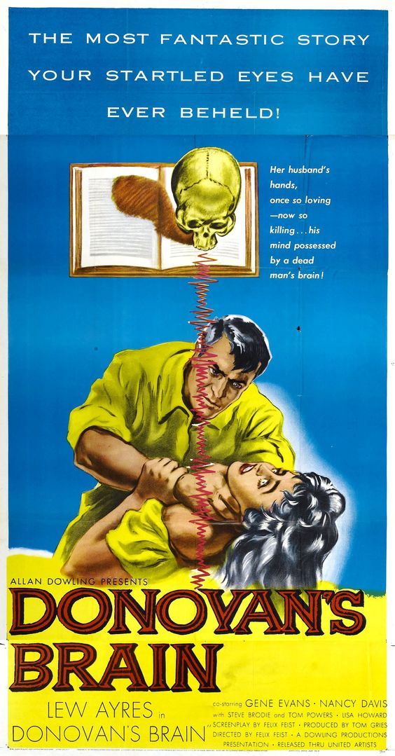 Though by now she had married Ronald Reagan, she continued to act, mainly concentrating on television, and appearing with her husband in episodes of the Ford Television Theatre and General Electric Theater series. In addition, she made three further movies. In Donovan’s Brain (1953), she was the lab assistant and loyal wife of a scientist (Lew Ayres) who has managed to keep a dead man’s brain alive. When she questions his experiments on a monkey, and he explains the reasons why, she replies: “You’re right, darling, I’m being silly.” “Thanks, dear,” he says. “Now will you go and make us one of those wonderful stews.”