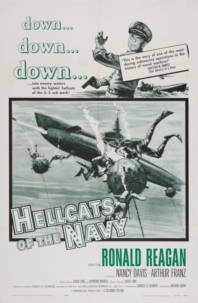 The only feature film the Reagans appeared in together was a minor war film, Hellcats of the Navy (1957), he as a submarine commander, she as a nurse. In her final movie, Crash Landing (1958), she is seen in flashback as the wife of a pilot in trouble (Gary Merrill), not really the sort of role to inspire her to continue in the acting profession.