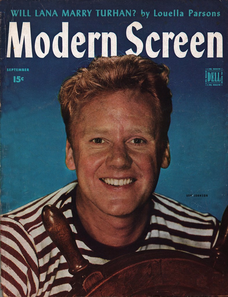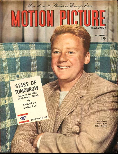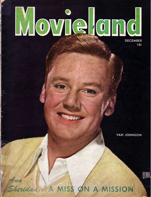 Van Johnson was born in 1916 in Newport, Rhode Island.   He started acting on Broadway in 1935.   He was Gene Kelly’s understudy in the Broadway musical “Pal Joey”.   He was first noticed on film in 1942 in “Murder in the Big House” with Faye Emerson.    He replaced Lew Ayres in the Dr Kildare series.   He won a contract with MGM and made such movies as “The Human Comedy”, “A Guy Named Joe”, “Thirty Seconds Over Tokyo” and “Brigadoon”.   In his later years he guest starred with June Allyson in Angela Lansbury’s “Murder She Wrote”.   Van Johnson died in 2008 at the age of 92.