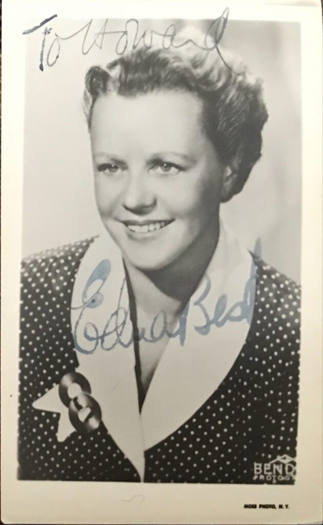 Edna started in films as early as 1921, but made little headway until Michael and Mary(1931), in which she recreated her role from the London stage. She then co-starred again with husband Herbert Marshall in Faithful Hearts (1932), but neither of these films received much international exposure. Her only Hollywood film at this time was The Key(1934), which, though directed by Michael Curtiz, was ,alas, ‘low-key’ as far as critical plaudits or box office were concerned. She had smallish parts in other British films, South Riding (1938), and the original version of Alfred Hitchcock‘s The Man Who Knew Too Much(1934), as the mother of kidnapped Nova Pilbeam. Not until 1939, did a worthy motion picture role come her way in the shape of the forlorn wife, whom violinist Leslie Howarddeserts for Ingrid Bergman in Intermezzo: A Love Story (1939). Other noteworthy screen roles were her Catherine Apley in The Late George Apley (1947), and the housekeeper Martha of The Ghost and Mrs. Muir (1947) which the New York Times review of June 27 considered ‘by far the best performance’ in the picture. Edna’s film appearances were few and far between, and only a handful adequately showcased her talents as an actress, which are so abundantly evident from the body of her work in the theatre.
