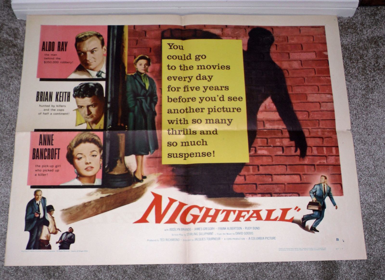 Having helped a fellow actor with a screen test, it was Bancroft who got the call from 20th Century Fox offering a $20,000-a-year contract. It was to prove a mixed blessing. Under her new name Anne Bancroft she made her movie debut in Don’t Bother to Knock, made in 1952 but held up for a year. Within five years she made 15 films, as various as Demetrius and the Gladiators, a baseball movie The Kid from Left Field and Gorilla at Large (1954). There were several routine westerns, modest thrillers including Jacques Tourneur’s Nightfall, plus the dismal The Girl in Black Silk Stockings (1957). By this time she admitted to over indulging in alcohol and being unhappily married to someone “who calls himself an actor but whose real occupation is playing a rich boy”. She was also in psychoanalysis.