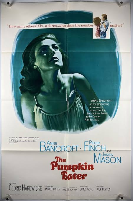 Harold Pinter adapted the Pumpkin Eater from Penelope Mortimer’s novel depicting the disintegration of a marriage. The rather cold, over-stylised direction by Jack Clayton could not obscure the riveting central performances by James Mason and Bancroft. Her harrowing portrayal as the distressed wife won her the 1964 best actress award at the Cannes Film Festival, a Bafta film award and the second of her five Oscar nominations.